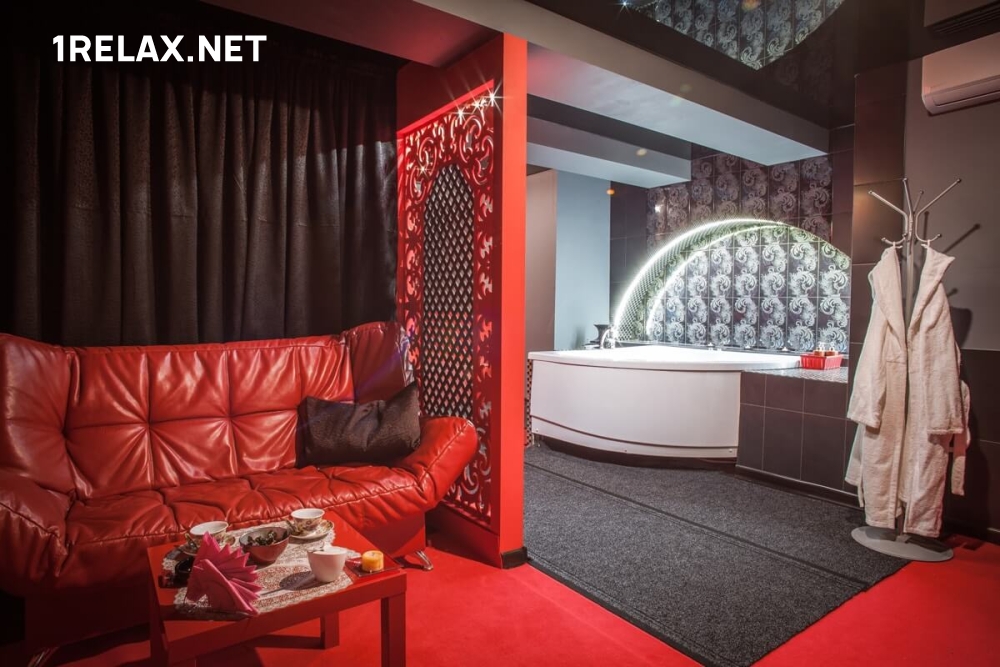 В массажном салоне четыре комнаты, интерьер которых тщательно продуман для того, чтобы обеспечить максимальный комфорт. Здесь есть кровати, телевизор, кондиционер. Любители завораживающих танцев на шесте смогут насладиться этим необыкновенным зрелищем.