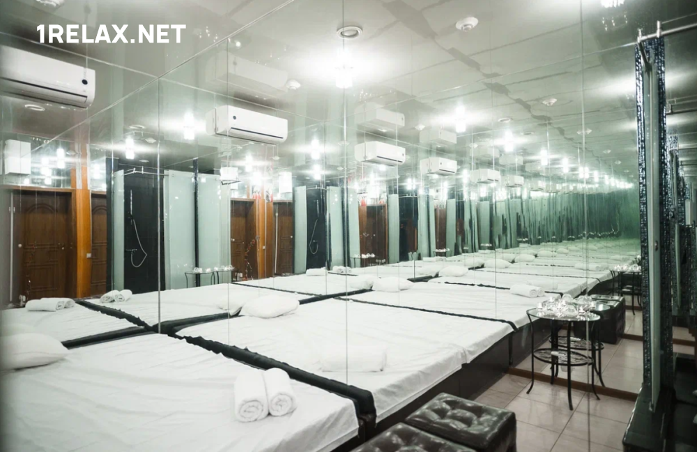 Спа салон — любимое место работы для шести красивых молодых мастеров, в каждую смену выходят 2-3 девушки. Все они прошли специальное обучение и мастерски владеют более чем 25 техниками эротического массажа, так что посетителю предоставляется широкий выбор. Множество программ — от проверенной годами классики до экзотических вариантов.